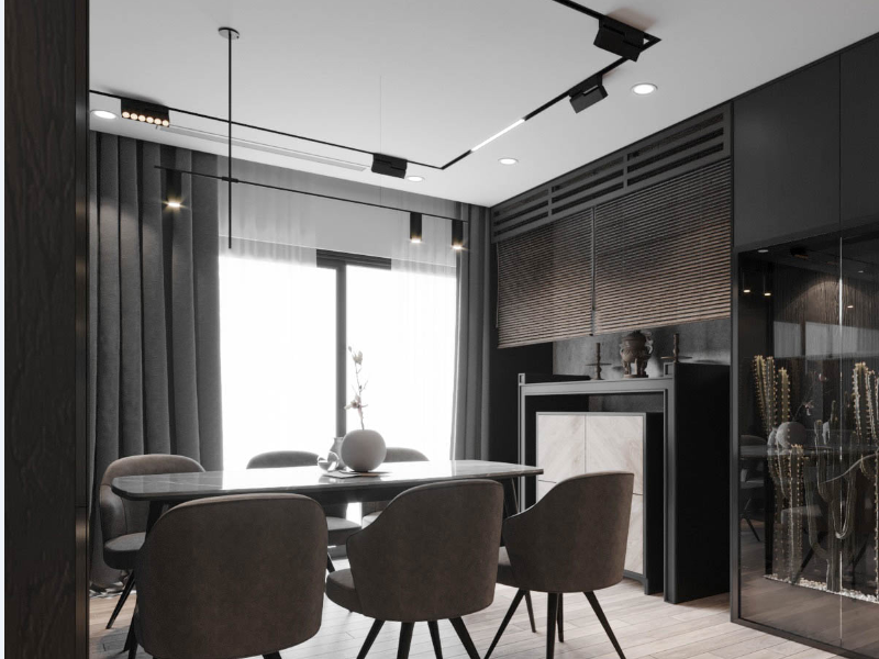 Không gian phòng khách thoáng đãng khi dùng đèn ray: