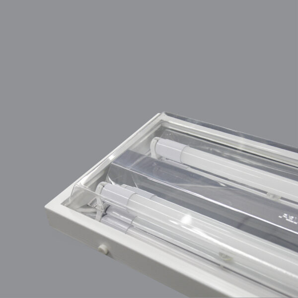 - Thân máng được làm bằng thép sơn tĩnh điện giúp đèn tản nhiệt hiệu quả, chống rò rỉ điện, chống ăn mòn.